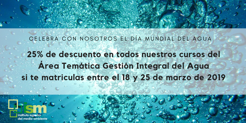 Este viernes día 22 de marzo se celebra el  Día Mundial del Agua, un evento a través del cual se pretende llamar la atención sobre la importancia del agua dulce y la defensa de la gestión sostenible de los recursos de agua dulce. Por este motivo y con la intención de conmemorar también desde el ISM la importancia que tiene el agua en la reducción de la pobreza, el crecimiento económico y la sostenibilidad ambiental, ponemos en marcha una promoción especial en todos nuestros cursos relacionados con la Gestión Integral del Agua.